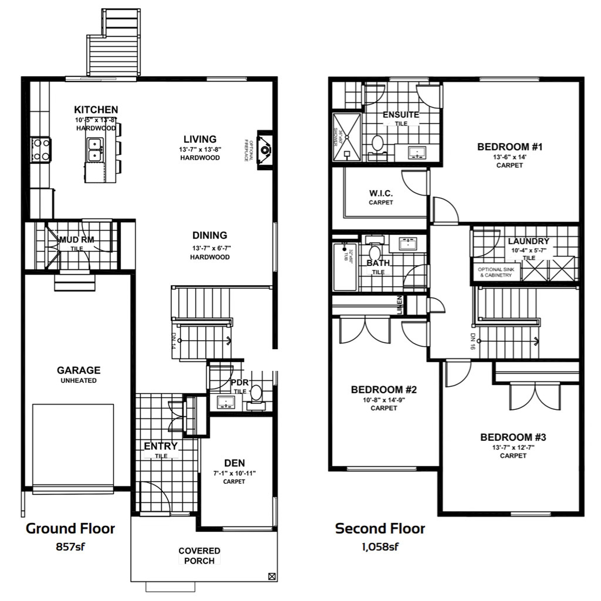 This two-storey home features 3 spacious bedrooms, 2.5 baths, and a main floor den, offering a functional layout designed for modern living. The main level is finished with 5.5-inch engineered oak hardwood flooring and elegant 12" x 24" porcelain tile, complemented by custom shaker cabinetry and quartz countertops throughout the kitchen and bathrooms.